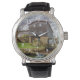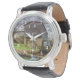 Uhr, Vintage Männeruhr mit schwarzem Lederarmband