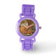 Uhr, Kinderuhr aus Edelstahluhr mit lila Lederarmband