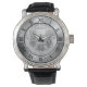 Uhr, Vintage Männeruhr mit schwarzem Lederarmband