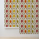 Diese phantastische gemusterte Tapete zeigt ein Muster von Mais und Eichen-Blätter. Die Blätter aus Eiche sind grün bis gelb, orange und rot, um die Veränderungen im Herbst oder Herbst darzustellen.
