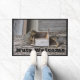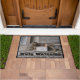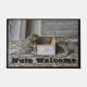 Eine Fußmatte, die ein Foto von zwei Eichhörnchen und von Wörtern "Nuss-kennzeichnet, Willkommen."