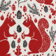 Rotes Eichhörnchenwald-Muster mit Kiefernzapfen, Kiefernästen, Eichen, Eichen-Blätter und Beeren. Ideal für ein Seehaus, saisonale Zimmerdekoration und auch für alle Arten von Kunsthandwerk-Projekten. Originelle Kunst von Nic Squirrell.