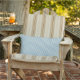 Schwarzer Eiffelturm Paris auf blau weiß fein Zickzack Design. Kissen draußen. Text: "J'adore Paris". Erstellt mit einem Lächeln von iolantesdesigns :-)!