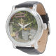 Uhr, Vintage Männeruhr mit schwarzem Lederarmband