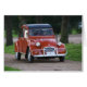 Ein altes, rotes Citroen 2CV Auto mit einer lächel