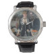 Uhr, Vintage Männeruhr mit schwarzem Lederarmband