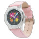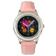Kinderuhr aus Edelstahl mit rosa Lederarmband