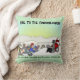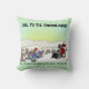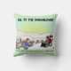 Ein Kissen mit einem lustigen Cartoon über das Anbeten eines Schneebloches. Originale Kunstwerke von DB Cartoon.