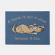 Eine Fußmatte für Hundeliebhaber, wenn ein Cartoonhund auf einem Knochen und Text-Sprichwort kaut, "ein Haus ist- nicht ein Zuhause ohne einen Hund".