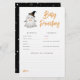 Dieses Design zeigt einen niedlichen kleinen Aquarellghost, der einen Zaubererhut und eine Bugs-Krawatte trägt. Eine Babydusche im niedlichen Oktober. Eine Babyvorhersage & Ratschläge Spielkarte, die zu unserem "A Little Boo Niedlich Halloween Baby Shower" Design passt. Sehen Sie sich die Sammlung auf dieser Seite für passende Artikel oder besuchen Sie unser Geschäft für mehr Halbwale Babydusche Design.