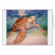 Dummkopf-Meeresschildkröte, schönes Aquarell mit einer Strecke des Spektrums von Farben von der Florida-Küstenlinie mit dieser Meeresschildkröte die Taucherüberschrift in Richtung zum Ufer oben gezeigt. Reizende Muster können auf dem Gesicht, den Flippern und der Muschel gesehen werden.