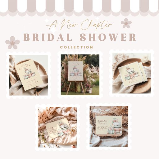 Feiern Sie die zukünftige Braut mit diesem charmanten, im Herbst inspirierten Design mit pastellfarbenen Kürbissen, sanften Blumen und gestapelten Vintagen Büchern. Ideal für ein Brautparty im Herbst oder eine gemütliche Storybook-Ansammlung. Eine sanfte Mischung aus saisonaler Eleganz und romantischen Coquette-Villen - ideal für Bräute, die Bücher, Rosettöne und Kürbisdetails Lieben.