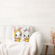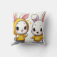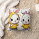 Weiße Kissen mit sehr niedlichem Design von zwei fröhlichen Hasen.