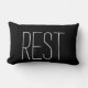 Ein Wort: Erholung wirft Kissen. Schwarz-Weiß-Kissen mit dem einfachen Wort "Erholung" auf beiden Seiten. Schwarz mit weißen Buchstaben auf einer Seite, weiß mit schwarzen Buchstaben auf der anderen Seite. Sehen Sie mehr in unserem Geschäft, Zitat Leben. Link unten: