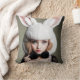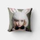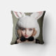 Eine Frau mit einem Hut aus Kaninchen und einer Kr Kissen