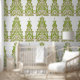 eine grüne und weiße Tapete mit verziertem Design