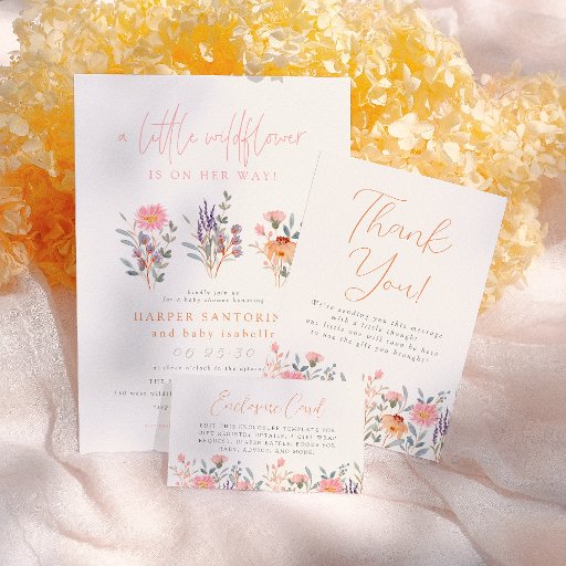 eine kleine wildblumeeinladungen für babyduschebabymädchenbabyduscheinspiriertes botanisches themarustikale blumefederbaby duschewildblume babyduscheblütenbabyeleganter
