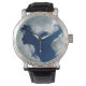 Uhr, Vintage Männeruhr mit schwarzem Lederarmband