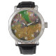 Uhr, Vintage Männeruhr mit schwarzem Lederarmband