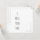 Schwarz-Weiß-Basic. Diese Karte ist von einer Reihe von schlanken Linien und Formen geschmückt und lautet "I Miss Your Face". Alles über dieses Design ist bearbeitbar; die einfachste Änderung ist es, die Nachricht zu aktualisieren, wenn Sie eine andere Nachricht wünschen. Klicken Sie zum Bearbeiten, wenn Sie zum Ändern von Farben, Schriftart oder Platzierung gewollt haben. Auf der Rückseite ist viel Platz, um eine persönliche Nachricht zu schreiben!