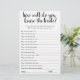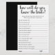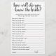 Wer kennt die zukünftige Braut am besten? Einfach "Wie gut kennst du die Braut?" Brautparty-Spiel mit einem lustigen, lässigen, handgeschriebenen Drehbuch. Das klassische Design umfasst ein modernes, handgeschriebenes Anführungstypografie-Overlay. Für andere Farben oder passende Produkte, besuchen Sie bitte den JustFharryn Zazzle Store, oder kontaktieren Sie den Designer, c/o Fharryn@yahoo.com Alle Rechte vorbehalten. #bohochic #zazzlemade"