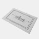 Moderne Graue und schwarze Türmatte. Graue Basis mit schwarzen Rahmen und "willkommen" in einem Skript-Schriftart mit Glyphe. Passen Sie Ihren Familiennamen/Firmennamen oder gewollt Text an. Das Design ist sauber und schlicht, es ist modern und minimalistisch. Durch dieses saubere und neutrale monochrome Design wird es für die meisten Orte und Farben passen - sowohl für Familie als auch für Unternehmen. Wenn Sie eine andere Farbbasis als grau gewollt haben, können Sie diese im Designwerkzeug leicht ändern.