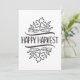 Erntedank grüßen die Karte mit den Worten "Happy Harvest" mit handgezeichneten Blätter. Fügen Sie Ihre eigene Nachricht auf die Rückseite.