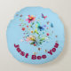 Mit diesem runden Kopfkissen fügen Sie Ihrem Raum eine gemütliche Touch hinzu, die ein charmantes Simple Floral Watercolor-Design mit einem Monogramm "Just Bee You" präsentiert. Die Hintergrundfarbe des Designs ist sanft blau, mit zarten Aquarellfarben-Blume, spielerischen Bienen und anmutigen Schmetterlingen, die ein skurriles, natürliches Flair verleihen. Dieses Kissen bietet Komfort und Stil, perfekt für jedes Zimmer, das eine Touch von Wärme und Inspiration benötigt. Ob als Geschenk oder für Ihre eigene Zuhause, es ist eine schöne Erinnerung, Ihre Einzigartigkeit zu begrüßen!