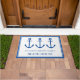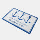 Diese nautische personalisierte Türmatte verfügt über inspirierte marineblaue Anker an der Küste auf Weiß. Personalisieren Sie Ihre Auswahl an speziellen Texten. Ideal für jeden Anlass.