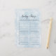 Mit dem Simple Blue Snowflakes Winter Baby Items Game verschönern Sie Ihre Babydusche im Winter mit Spaß. Dieses niedliche Aquarellspiel mit sanft blauen Schneeflocken besticht durch sein festliches Ambiente und die gemütliche Atmosphäre einer "Baby It's Cold Outside"-Feier. Es ist schlicht und dennoch einladend und bietet den Gästen die Möglichkeit, sich mit Babys zu versorgen und dabei den Charme der Wintereinrichtung zu genießen. Ideal für ein lässiges und interaktives Babyduschenspiel, behalte diese Unterhaltung Ihre Gäste zum Lachen. Egal ob Sie eine kleine Ansammlung oder eine größere Feier veranstalten, dieses mit Schneeflocken inspiriert Spiel fügt Ihrem Baby-Duschfest eine angenehme Touch hinzu.
