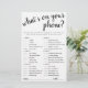 Einfache Dusche/Party-Spielpunktekarte mit einem lässigen, handgeschriebenen Drehbuch zum Thema "Was ist auf deinem Handy". Das klassische Design beinhaltet ein modernes, handhabbares Offerttipografie-Overlay. Für andere Farben oder passende Produkte, besuchen Sie bitte den JustFharryn Zazzle Store, oder kontaktieren Sie den Designer, c/o Fharryn@yahoo.com Alle Rechte vorbehalten. #bohochic #zazzlemade