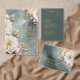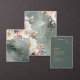 Diese Hochzeitssuite mit ihren üppigen, dramatischen Blumen von cremefarbenem Weiß bis Rosa, goldfarbenen Akzenten und wunderschönen Aquarellbildern schafft ein elegantes, romantisches Ambiente, das den Gästen einen kleinen Eindruck von dem vermittelt, was sie an ihrem großen Tag erwarten können. Dieses minimalistisch gestaltete Papier bietet eine Vorlage, mit der Sie Ihre Initialen, den Ort der Hochzeit und das Datum in Gold auf spanischem grünem Hintergrund leicht hinzufügen können. Suchen Sie den ID1022 um alle Produkte in dieser Hochzeitssuite zu sehen.