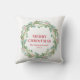 Elegantes Weihnachtskissen mit "Frohe Weihnachten", Familienname und Jahr in Rot, umgeben von einem grünen Kranz. Dieses Kissen in der Weihnachtszeit wird Ihre Weihnachtsdekoration mit einer festlichen Touch bereichern.