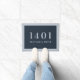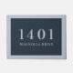 Als Geschenk für Neuvermählte oder neue Hausbesitzer, unsere personalisierte Begrüßungstür in schicken Marineblau und Grau bietet Ihnen Hausnummer und Straßenname in klassischer Schrift.