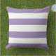 Einfach stilvolles Outdoor-Kissendesign mit breiten, weißen, horizontalen Streifen und einem amethystischen lila Hintergrund. Die klassische Gestaltung harmoniert mit jedem Dekor-Stil. Die Hintergrundfarbe kann geändert werden.