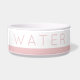 Moderne und einfach bedruckte Keramik Pink Stripe Dog Bowl mit "Wasser" auf der Außenseite in einem minimalistischen Streifen Rand unten in einer hübschen und femininen trendigen rosa Farbe. Der dünne Sans-Serif-Schriftart passt zu jeder Dekoration über Jahre hinweg.