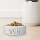 Niedliche moderne Bauernhausschüssel für Hunde oder Katzen mit "Wasser" in handgeschriebenem Stil Holzkohle graue Schrift.