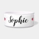 Eine niedliche Keramik-Hundeschüssel mit Wasserfarbenherzen auf jeder Seite Ihres Hundes. Ein einfaches personalisiertes Design Rae Dunn Inspirierte. Personalisieren Sie mit Ihrem Haustiernamen , ideal für einen Welpen , Hund oder Katze.