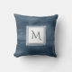 Ein schlichtes, subtiles Marmordesign, das Kissen in Marineblau mit einem modernen, weißen quadratischen Abzeichen, das Sie durch das Hinzufügen Ihres mit Monogramm Initialen zu personalisieren. Dies ist Teil der Sailor Blue Subtle Marble Monogram Collection.