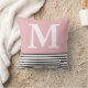 Einfache Rosa mit b/W-Streifen Mit Monogramm Kissen