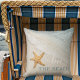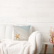 Ein elegantes Pastellkissen mit Seestern am Strand. Schöne Lage für einen Zuhause- oder Strandverleih.