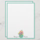 Einfache Vase von Blume, die mit Namen personalisiert sind, machen moderne und schicke Schreibwaren. Das Design umfasst eine minzgrüne Vase mit rosafarbenen und gelben Blumen, die einen passenden Rahmen vorne und hinten aufweist.