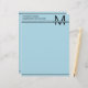 Einfacher hellblauer Minimalistischer Monogramm-Bu Briefbogen
