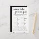 Tierschwangerschaft Quiz Babydusche oder Geschlecht enthüllen Party-Spiel (mit Antworten unten) mit einem lustigen, lässigen handgeschriebenen blüh-Skript. ANTWORTKEY: Pig-122, Kangaroo-37, Horse-336, Cat-63, Rabbit-33, Elephant-645, Enck-28, Sheep-148, Cow-284, Whale-360, Lion-108 Hund-63, Maus-20, Giraffe-419, Bear-220, Chimpanzee-243, Ziege-150 Für andere Farben oder passende Produkte, besuchen Sie bitte den JustFharryn Zazzle Store, oder kontaktieren Sie den Designer, c/o Fharryn@yahoo.com Alle Rechte vorbehalten. #zazzlemade