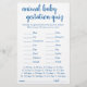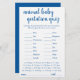 Tierschwangerschaft Quiz Babydusche oder Geschlecht enthüllen Party-Spiel (mit Antworten unten) mit einem lustigen, lässigen handgeschriebenen blüh-Skript. ANTWORTKEY: Pig-122, Kangaroo-37, Horse-336, Cat-63, Rabbit-33, Elephant-645, Enck-28, Sheep-148, Cow-284, Whale-360, Lion-108 Hund-63, Maus-20, Giraffe-419, Bear-220, Chimpanzee-243, Ziege-150 Für andere Farben oder passende Produkte, besuchen Sie bitte den JustFharryn Zazzle Store, oder kontaktieren Sie den Designer, c/o Fharryn@yahoo.com Alle Rechte vorbehalten. #zazzlemade