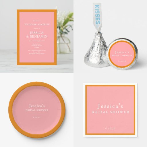 Modern Pink and Orange Colorblock Bridal ShowerDesignt von Opal Ellery