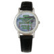 Klassische Damenuhr mit schwarzen Lederarmband