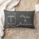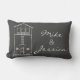 Kleine Haus-Tafel, die graues und weißes personalisiertes rechteckiges lumbales Kissen zeichnet. Personifizieren Sie es mit Ihren Namen oder kundengebundenen Text. Dieses Bild ist von meiner ursprünglichen Tinte auf Plastik-Handdem zeichnen einer kleinen rustikalen Hütte mit dem Bezaubern der Architekturdetails und kleiner Stein benches jede Seite der Tür. Ich änderte das Bild digital, um wie eine weiße Kreide auszusehen, die auf einer dunkelgrauen Tafel zeichnet.