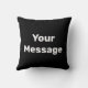 Dieses schwarze Wurfkissen hat einen weißen Bildschirmtext. Sie können es bearbeiten, um Ihre benutzerdefinierte Nachricht zu zeigen.