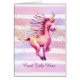 Das süße Fantasy-Thema für kleine Mädchen ist mit einem rosa Aquarell Unicorn mit Lavendel und lila Akzenten. Pastel Aquarellfarbener Streifen Hintergrund in passenden Tönen mit bedrucktem Goldstaub.